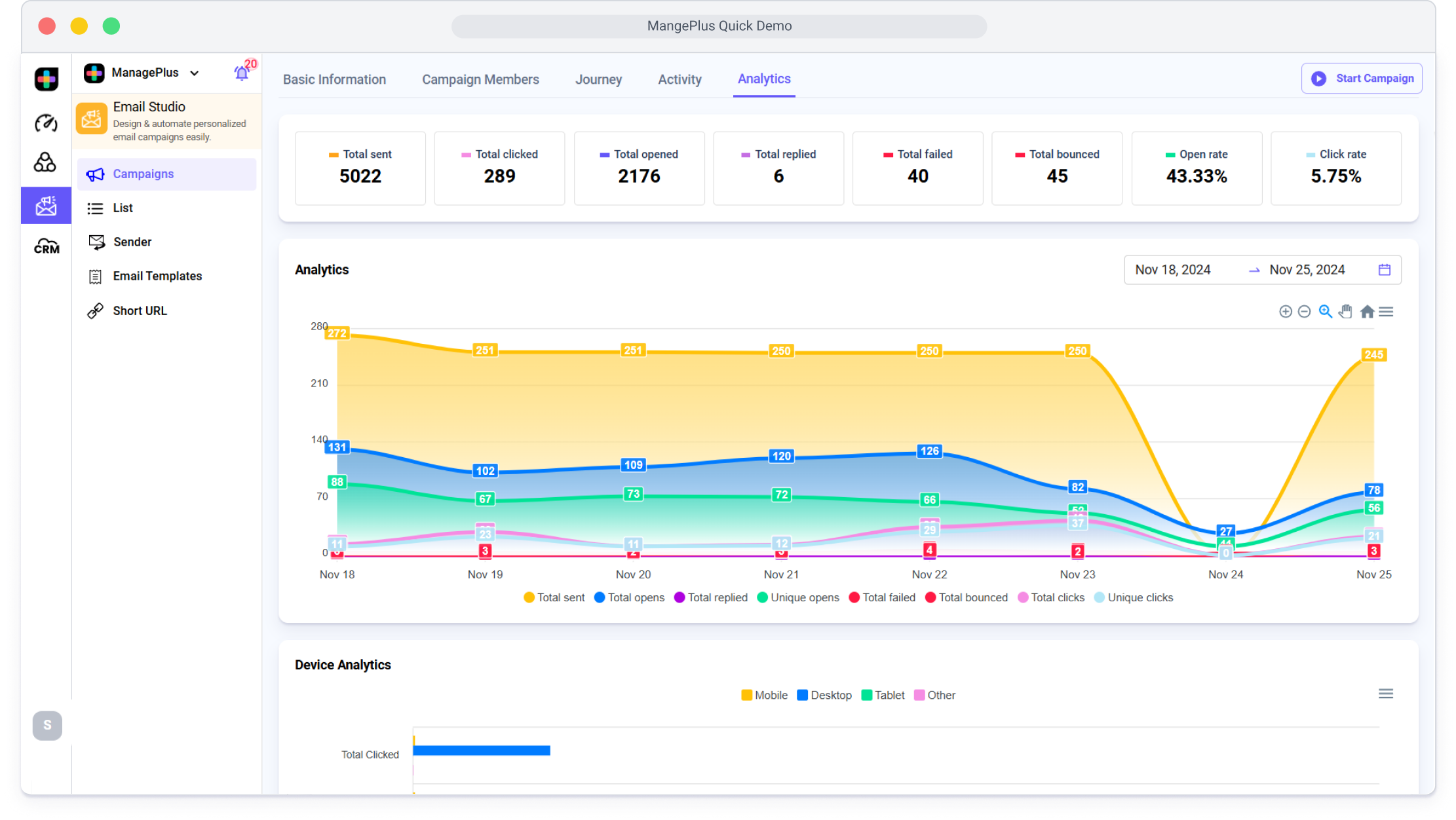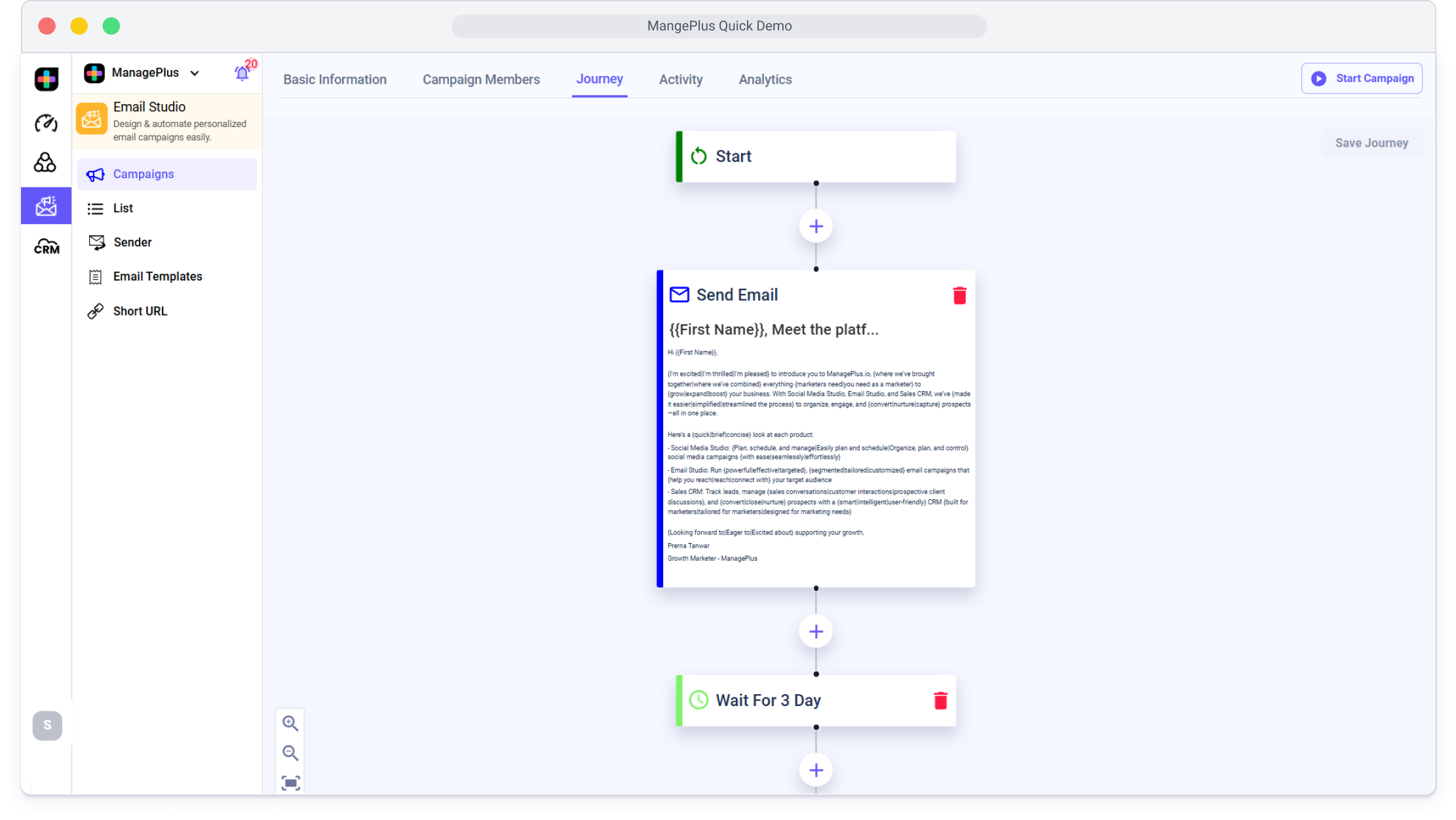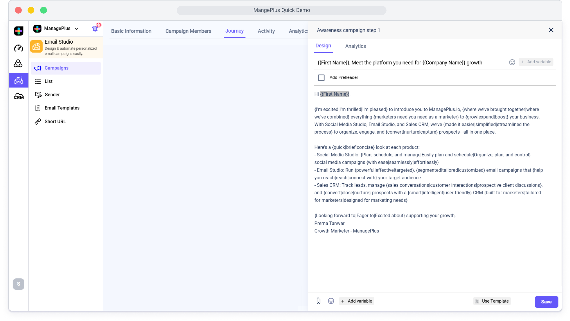 ManagePlus is a marketing automation SaaS platform built to empower businesses with tools for social media scheduling, email campaigns, lead tracking, and CRM integration. The product simplifies campaign management and optimizes marketing workflows for teams and agencies.