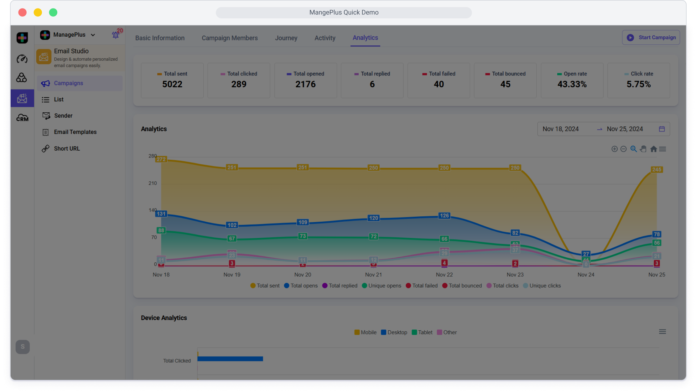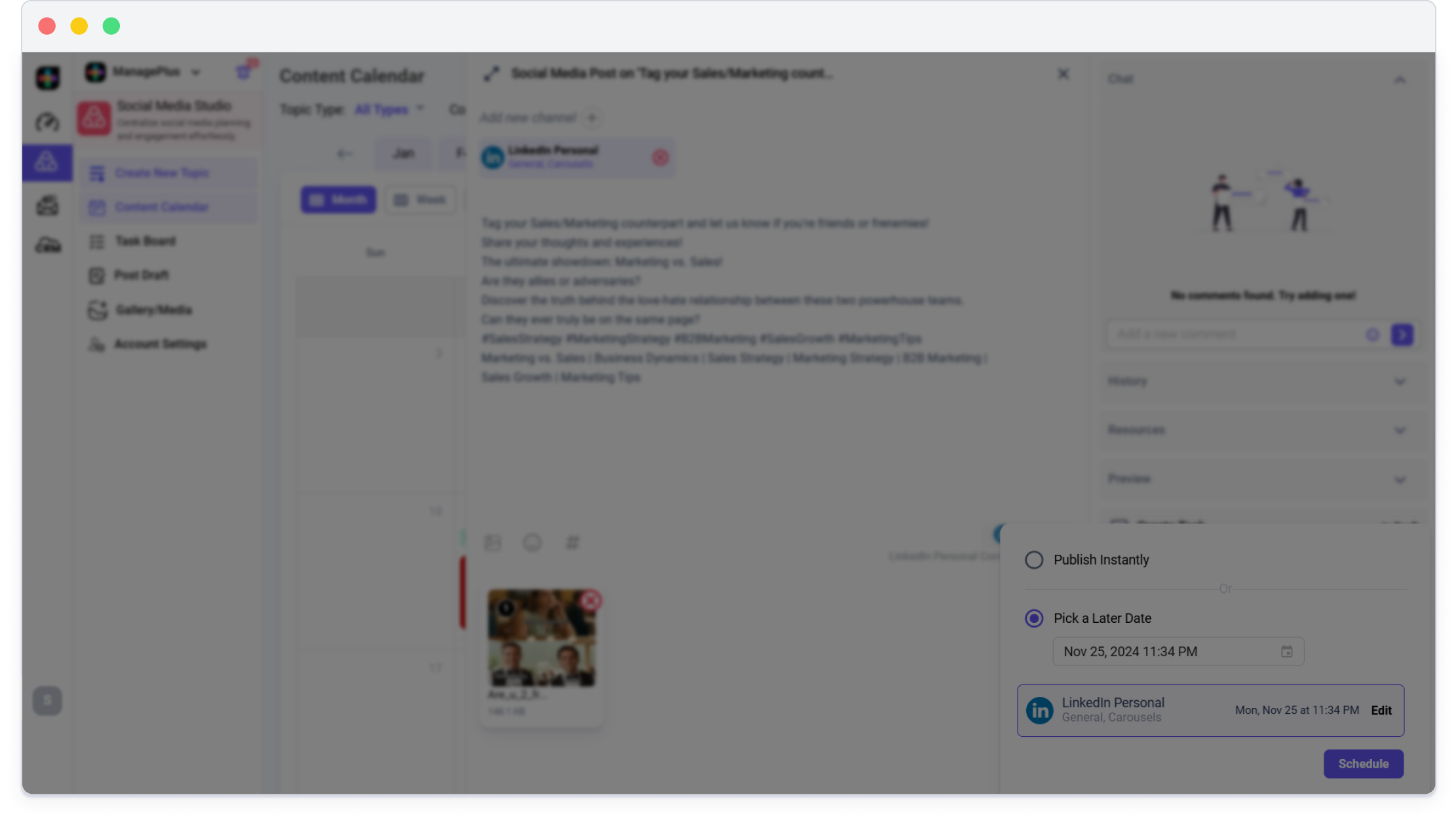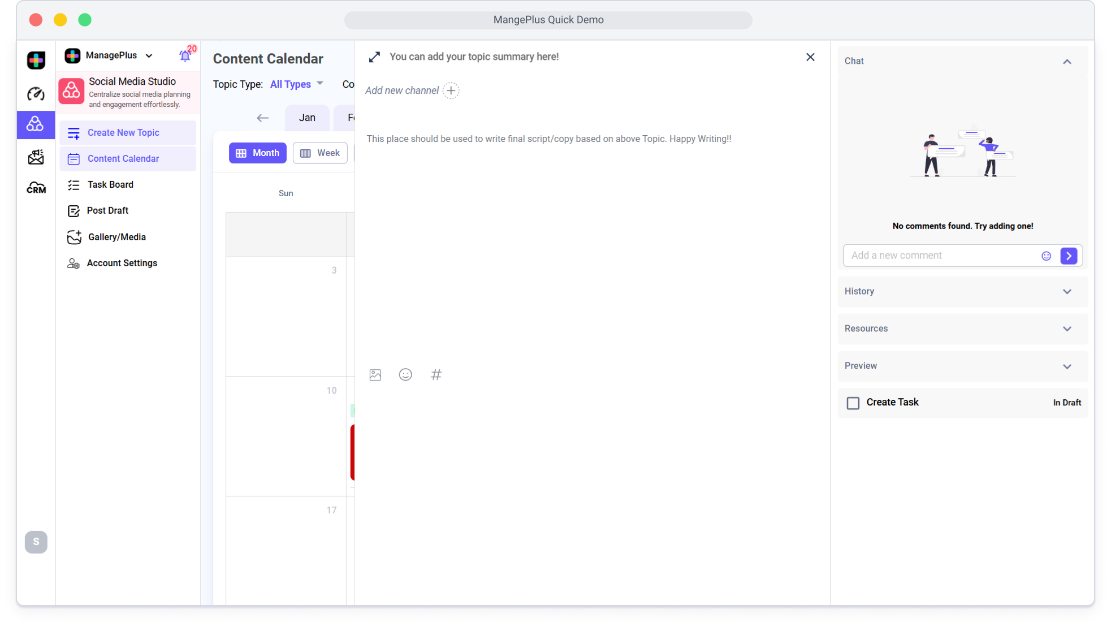 ManagePlus is a marketing automation SaaS platform built to empower businesses with tools for social media scheduling, email campaigns, lead tracking, and CRM integration. The product simplifies campaign management and optimizes marketing workflows for teams and agencies.
