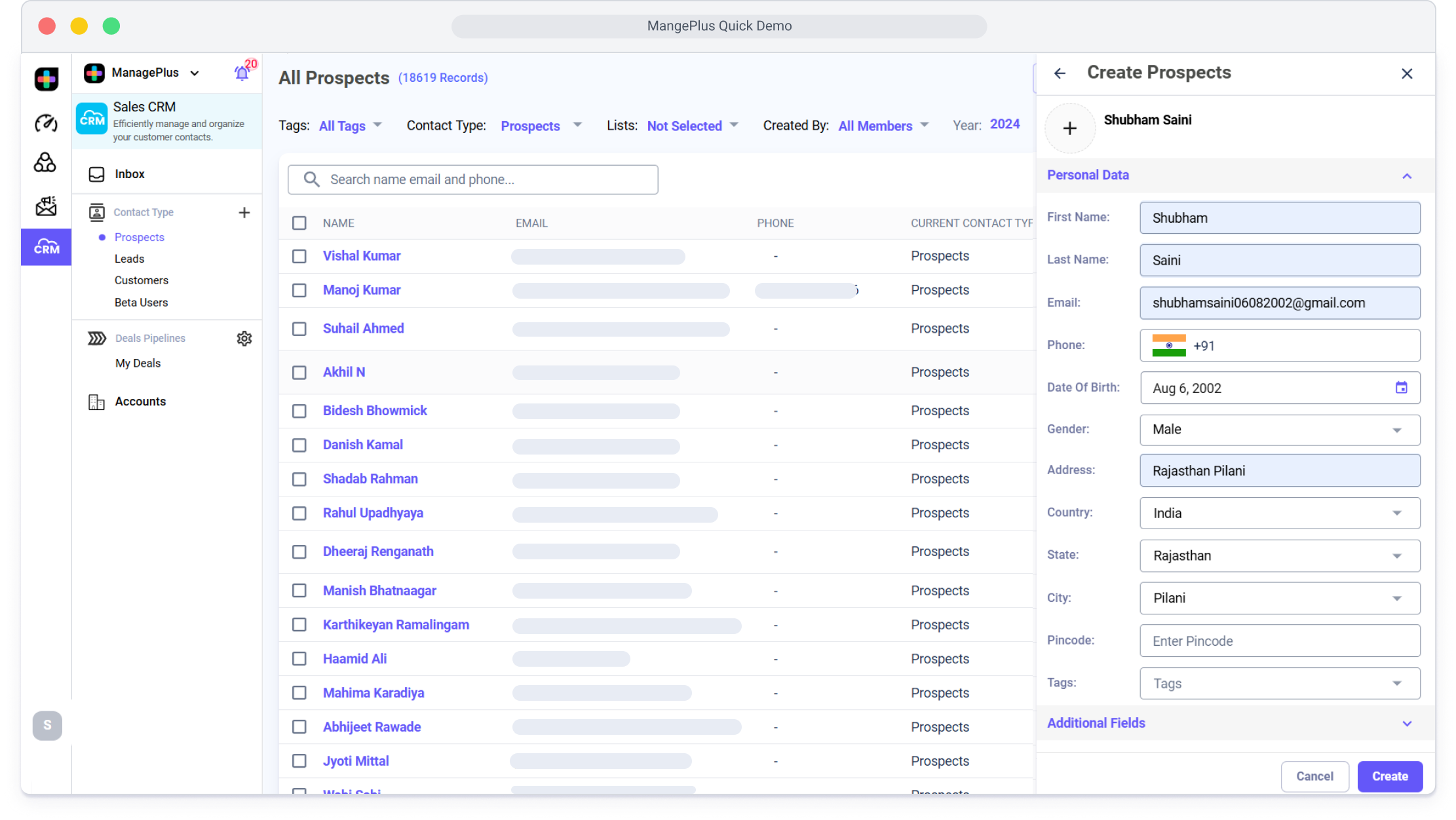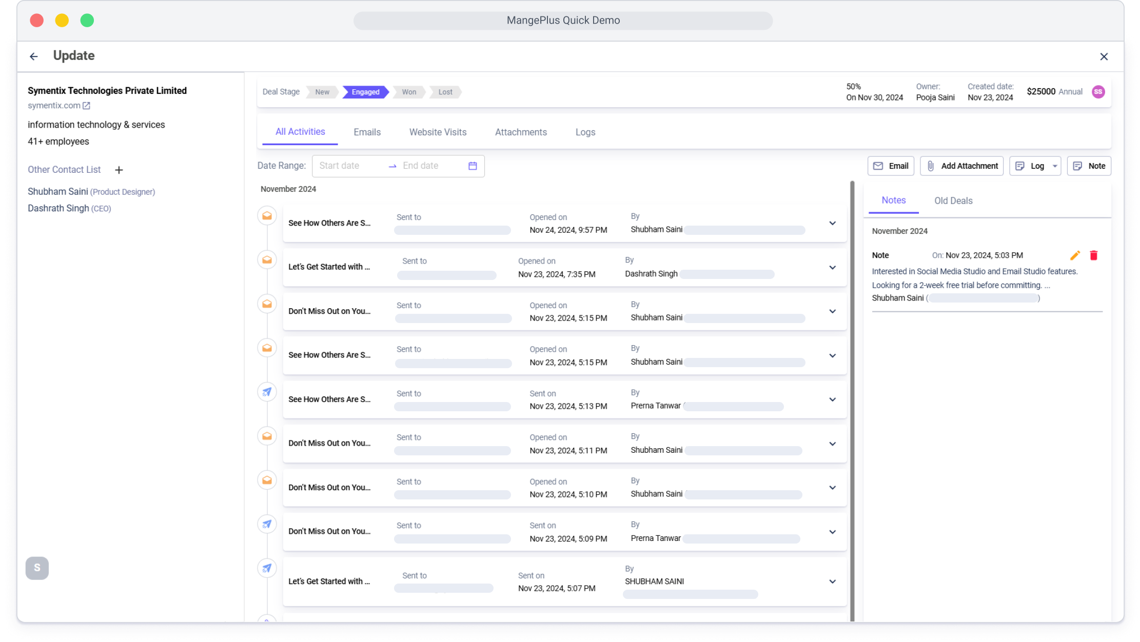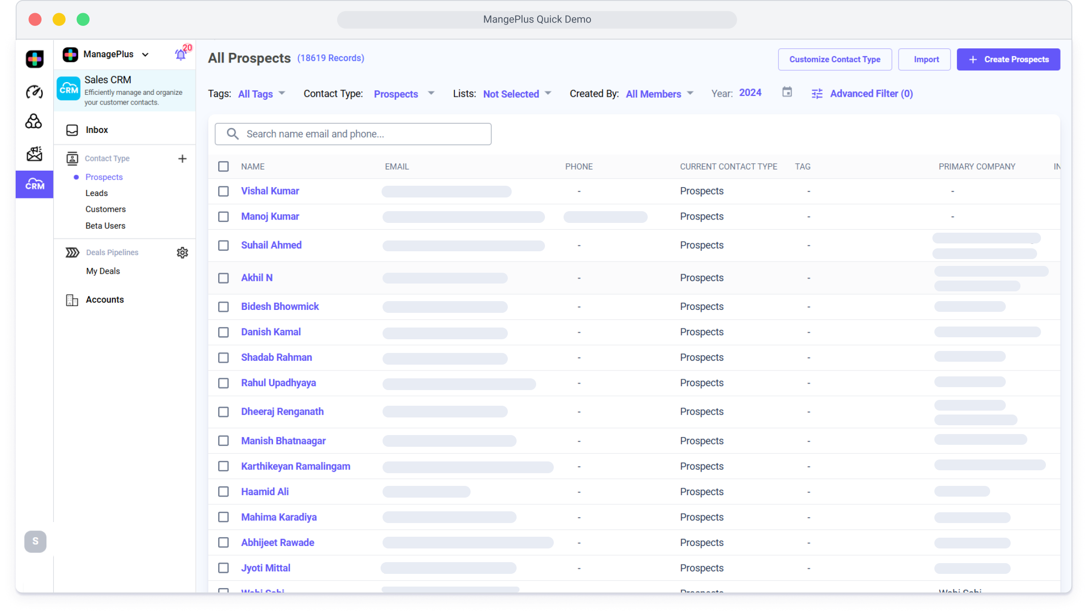 Manage all your Customer activities in inbuild CRM. Never miss a lead