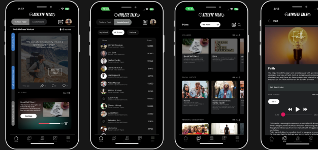 AthleteTalk combines the key features of popular social media platforms that make working on mental health and wellness attractive to athletes. By utilizing thought-provoking images, followed by abbreviated discussions, and short exercises its less challenging for athletes to work on wellness three to five minutes – or more per day.