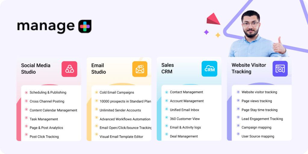 ManagePlus is a unified marketing automation platform built for agencies and growing businesses who struggle with fragmented workflows across email marketing, social media, WhatsApp marketing, CRM, and analytics. Instead of jumping between multiple tools, exporting spreadsheets, and reconciling customer data, ManagePlus brings everything together in one system designed for performance, visibility, and scale.