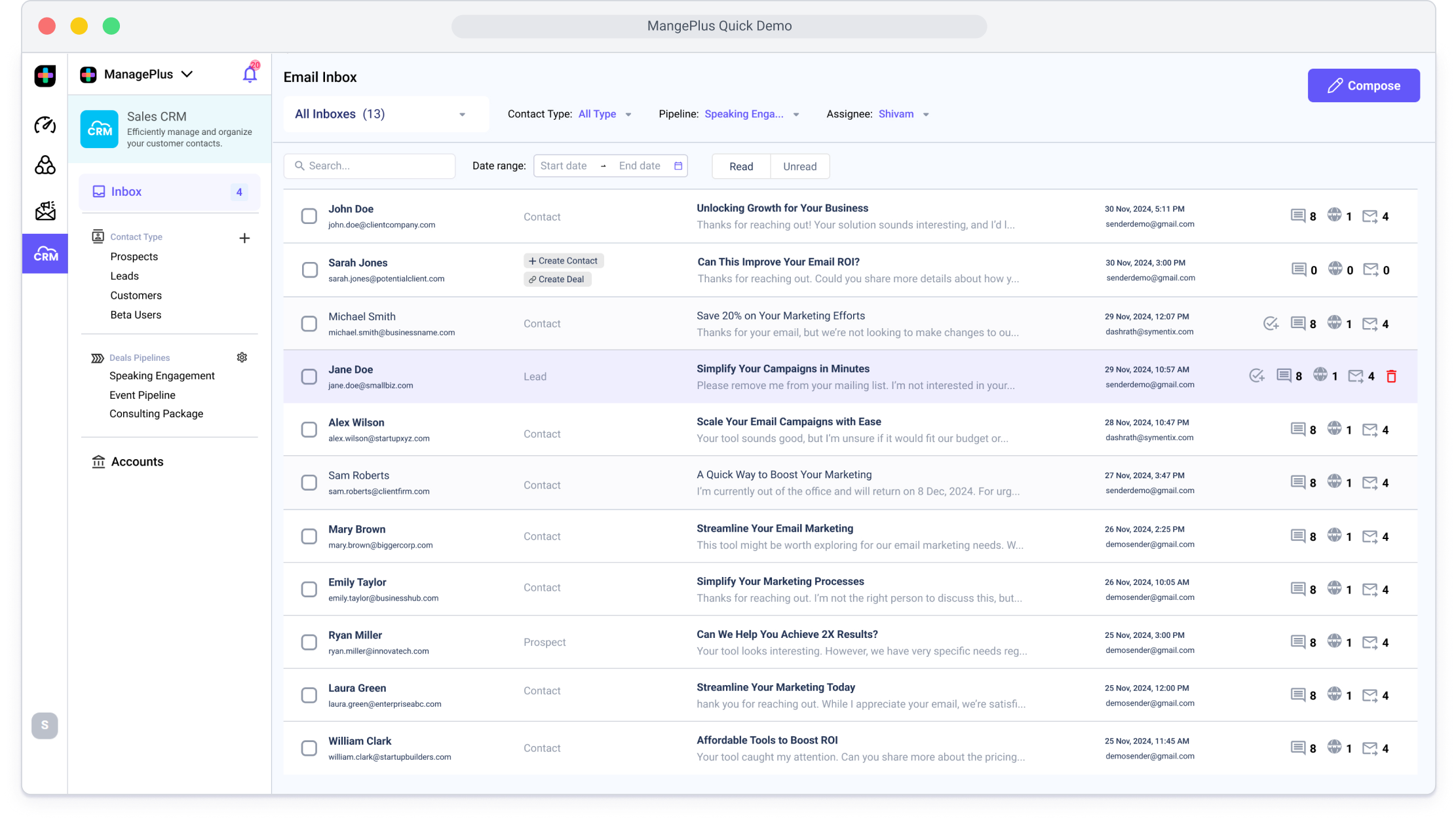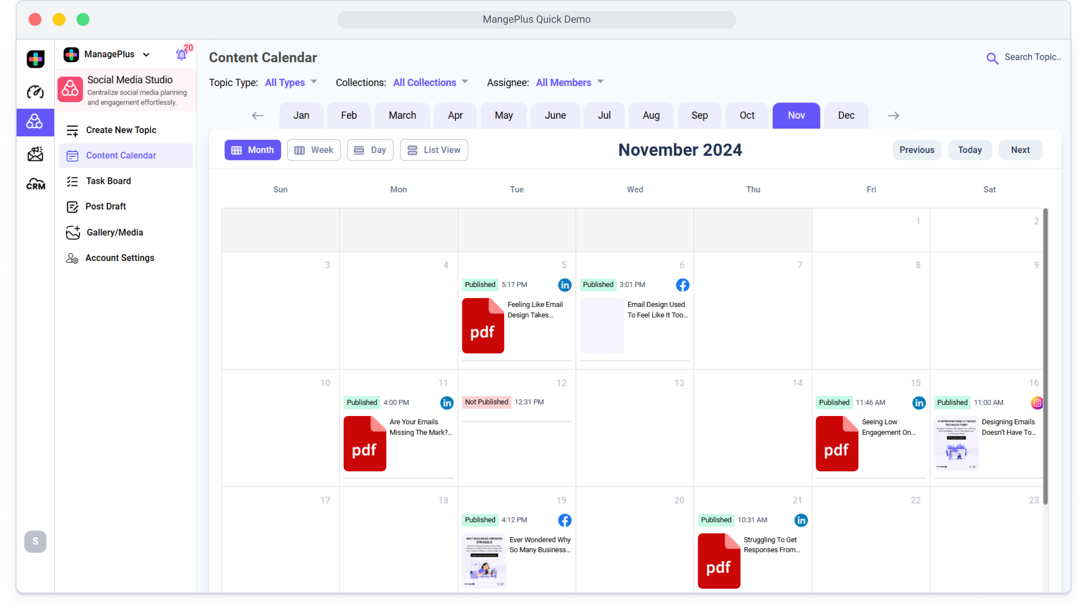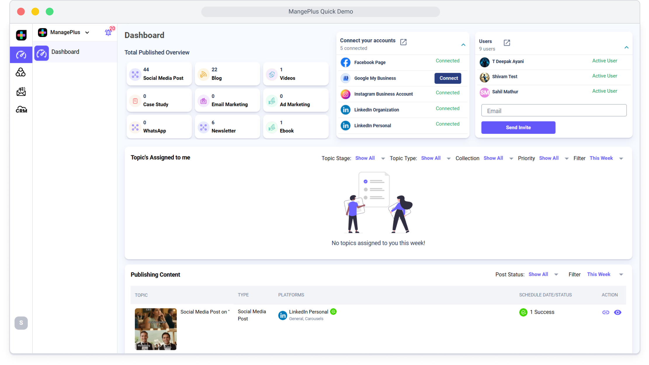 ManagePlus is a marketing automation SaaS platform built to empower businesses with tools for social media scheduling, email campaigns, lead tracking, and CRM integration. The product simplifies campaign management and optimizes marketing workflows for teams and agencies.